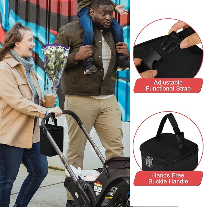 • PORTABLE WITH DETACHABLE BUCKLE: The detachable buckle design of the reusable baby bottle bag ensures you two portable carry ways, handhold or hanging on a stroller, together with soft nylon handle, let you carry the bottle bag effortlessly and comfortably.