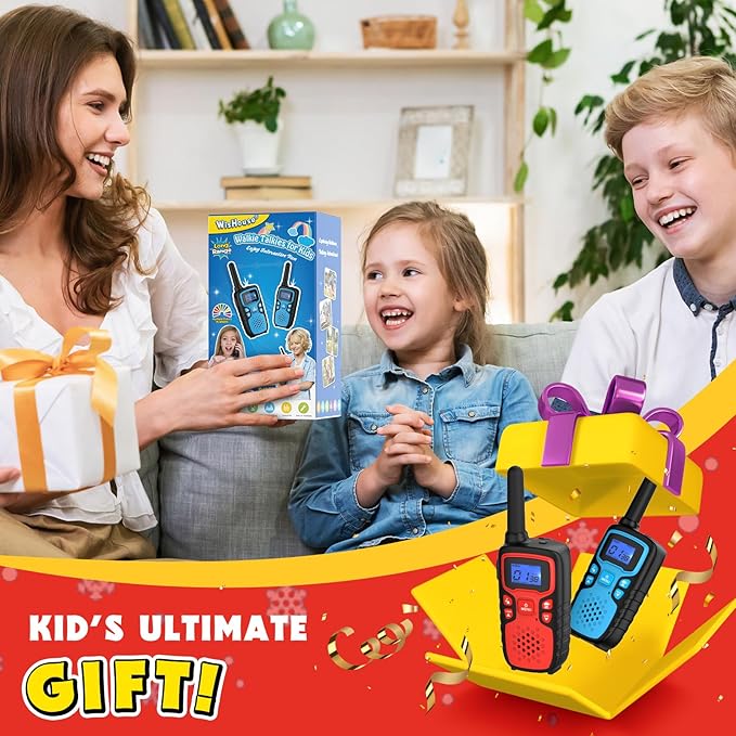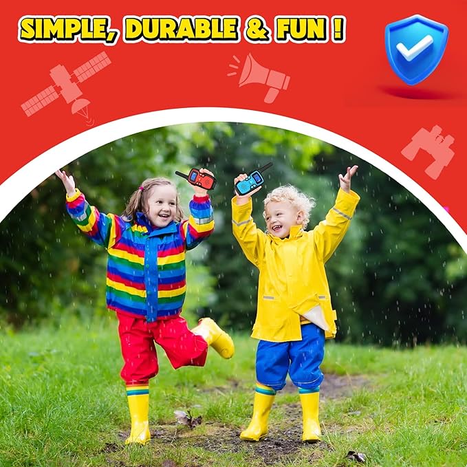 • 【Bold Gift for Boys and Best Buddies Ages 5–12】: In eye-catching red and blue, this 2-pack walkie talkie is great for brothers, neighbors, or best friends who enjoy outdoor missions, games, or camping.