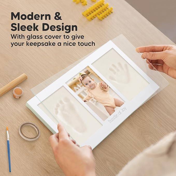 • 100% Safe Food-Grade Clay - Our baby picture frame features 100% baby-safe air-dry clay, perfect for preserving your baby prints. Our premium material ensures durability, the baby hand and footprint maker will look flawless for years to come.