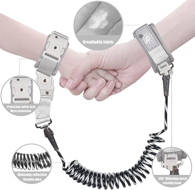 • Excellent Quality: The anti lost wrist link is made up of stainless steel wire and durable PU material which is safe to human body and is difficult to be cut off by knife. The 360°revolving head enables your little ones play and run freely, no need to worry that your kids will be tripped.