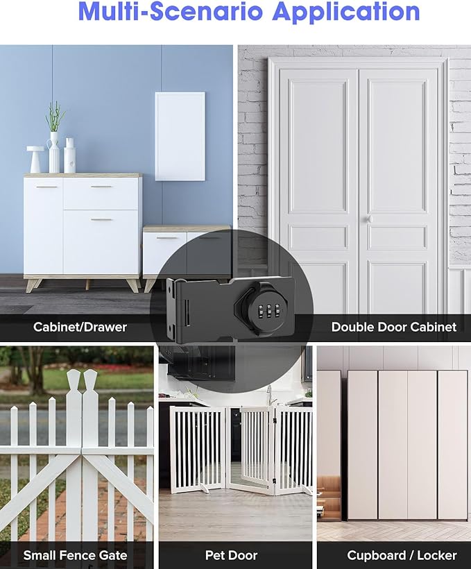 • Wide Application: Cabinet door combination latch lock can be used with small doors, shed doors, barn doors, garden, pet doors, cabinets, drawers, mailboxes, safes, office file cabinet locks, etc