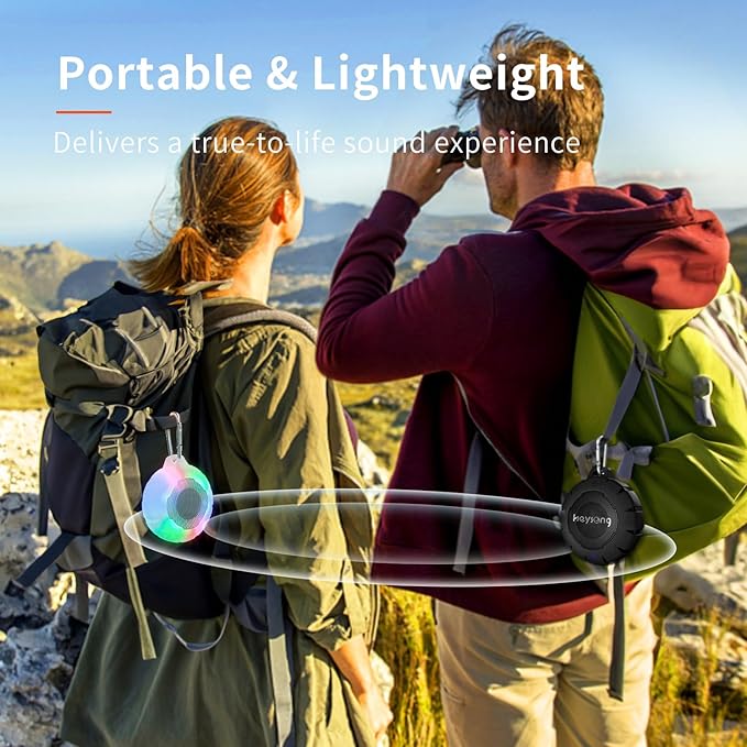• Portable & Adventure-Friendly: Designed for outdoor fun, this compact speaker includes a carabiner for easy carrying. Perfect for beach outings, kayaking, camping, or poolside relaxation.