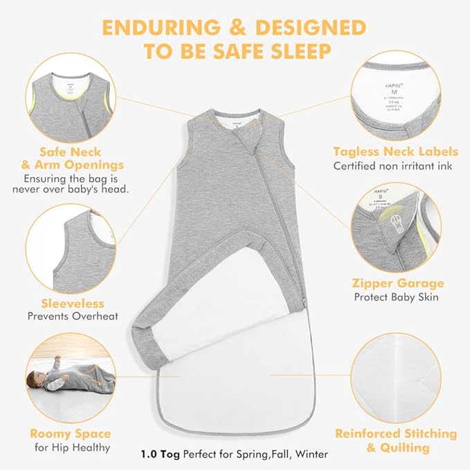 HAPIU Unisex Rayon Made from Bamboo Baby Sleep Sack TOG 1.0, 2-Way Zipper YKK, Wearable Blanket Baby
