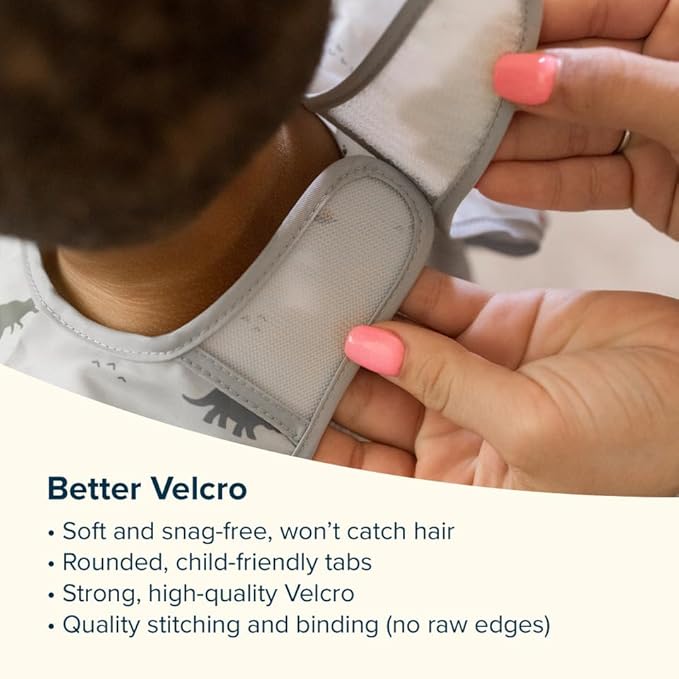 • TRAVEL MUST HAVES: Our baby feeding bib is the ultimate travel companion.Soft,lightweight and waterproof,this infant bib features a no-scratch closure that's gentle on your child.It protects clothes,floors and tables from messes.Bring your baby anywhere with confidence,knowing you've got the right toddler bib and baby smock bib for the job.