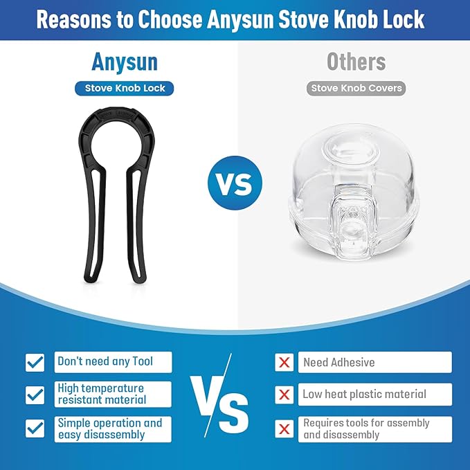 • Keep your kids safe: Use the Anysun stove knob cover lock. In this way, the baby does not open the gas stove switch to avoid accidents. Our functional design stove knobs effectively prevent babies from opening gas stoves to protect children from burns, scalds, gas leaks, and other accidents.