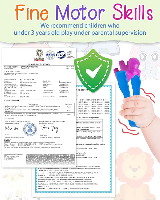 • LEARNING THROUGH PLAY: While sorting the animals toy, children need to sit and balance core muscles to move hands or use tweezers freely and figure out which color fits which bowl. This kind of activity will help your toddlers to control their body movements which are in coordination with the sorting activity also early skills for writing! The learning toy is perfect for your toddlers to learn shape and geometry, build color recognition and exercise kids’ space conception.