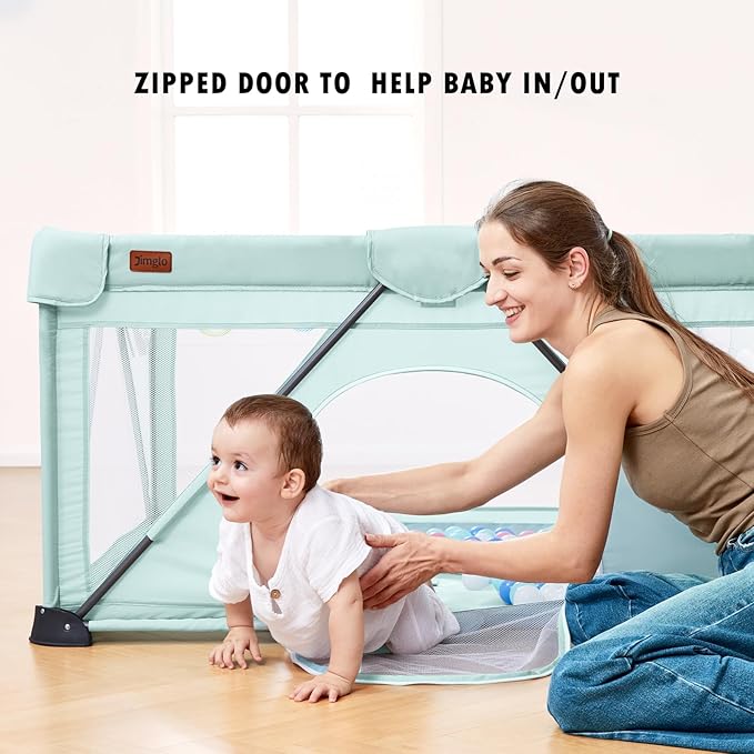• ❤360° Breathable Mesh: The mesh makes it possible to keep track of your baby's movements. Playpen with zippered gate meets baby's need to enter and exit independently. It comes in soft neutrals and has a sleek design meant to fit in with your decor for years to come.