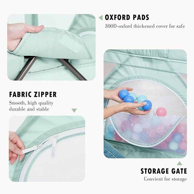 • ❤Easy to Set Up: Assembles and stows in minutes, no tools required. Playpen Includes 50 ocean balls and 2 handles for even more fun!
