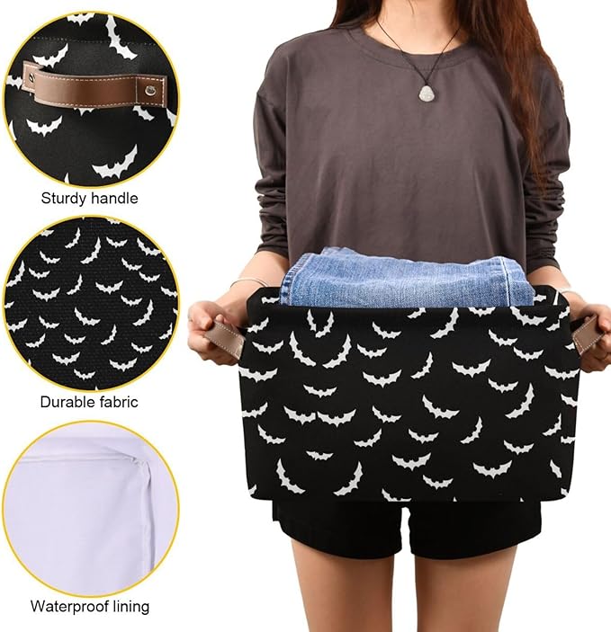 Storage Basket Bin Bats Halloween Goth Organizer Basket Collapsible Shelf Basket Cube with handle for Nursery Bedroom Bathroom