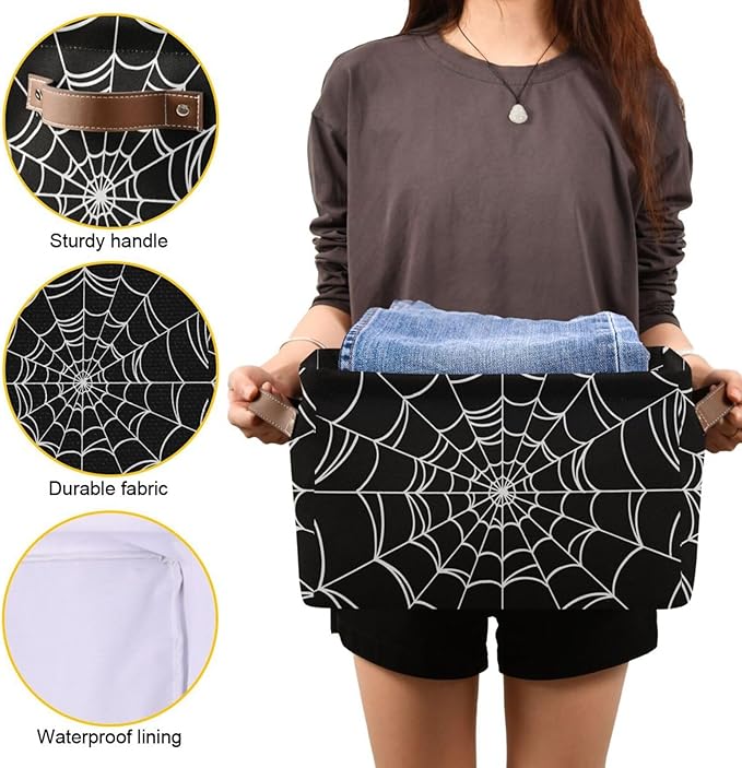 • Storage Basket Cube Material: Canvas exterior, PE waterproof coated white lining fabric, pu leather handles. Sturdy leather handle make it easy to carry or pull off and out of shelves.