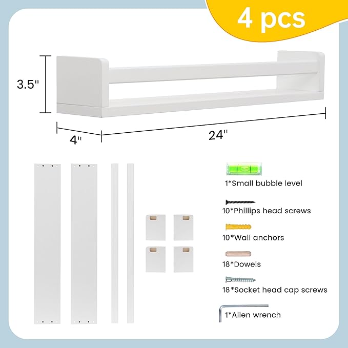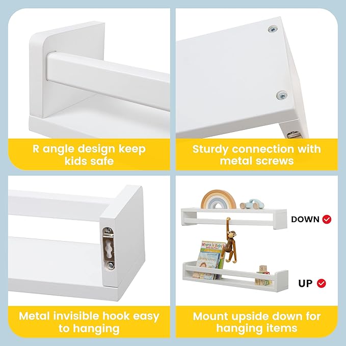• Durable & High-Quality: Made of solid pine wood, these floating shelves are built to last. They'll provide a stylish and practical storage solution for years to come, making them an excellent addition to nursery decor and any room throughout your home