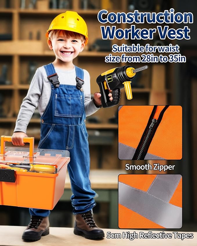• 【Handheld Tool Kit For Easy Storage】54 pcs toddler tool toys include everything you need in the toolbox for easy storage just like dads' toolbox. This kids tool box includes battery-powered toy drill, hammer, screwdriver, blinkers, knife, toolbox, working overalls, wrench, screw etc.