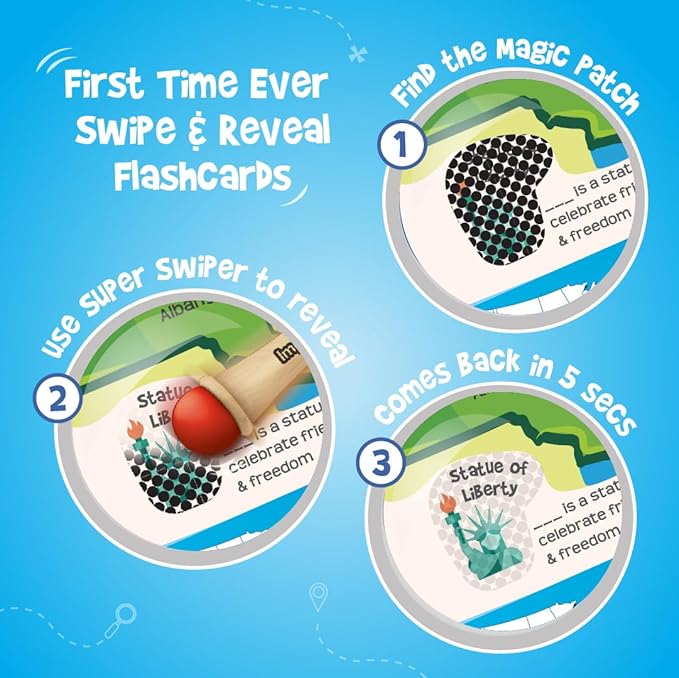 • EXPERIENCE THE ULTIMATE USA STATES DISCOVERY - Learn about the States of the USA, their Capitals, and intriguing Fun Facts, while immersing in interactive quizzes, revealing hidden facts with SWIPE & REVEAL, and uncovering magic patch surprises with this USA map puzzle and flash cards for an unforgettable journey into American history, geography, and culture, ultimately mastering 750 plus facts along the way.