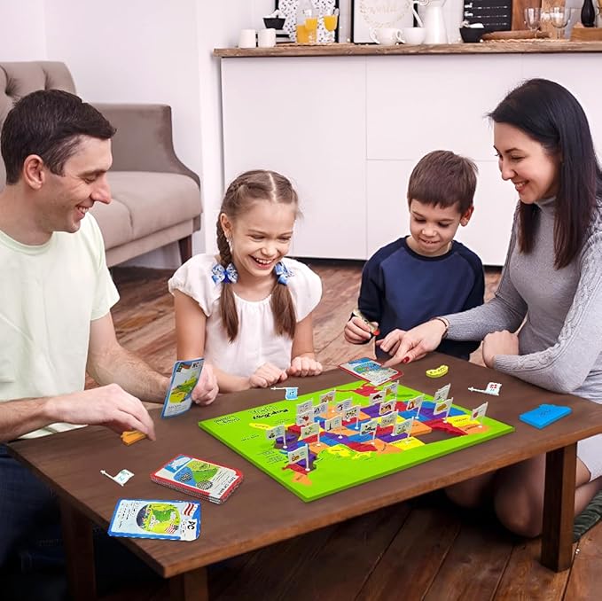 • WHAT YOU GET - An EVA foam frame puzzle featuring 50 precisely cut state-shaped pieces for learning state locations, accompanied by 52 magical Game Cards, including an instructional guide and a dedicated Washington DC card, and 1 Super Swiper, all neatly housed in a portable, travel-friendly box.