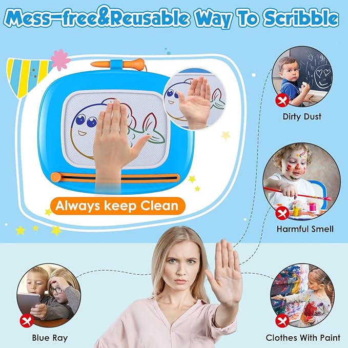 Smasiagon Toddler Girl Boy Toys,Magnetic Drawing Board for Toddlers 1-3,Early Learning Doodle Board Writing Painting Sketch Pad, Birthday Christmas Halloween Easter Gifts for 1 2 3 Year Old (Blue)