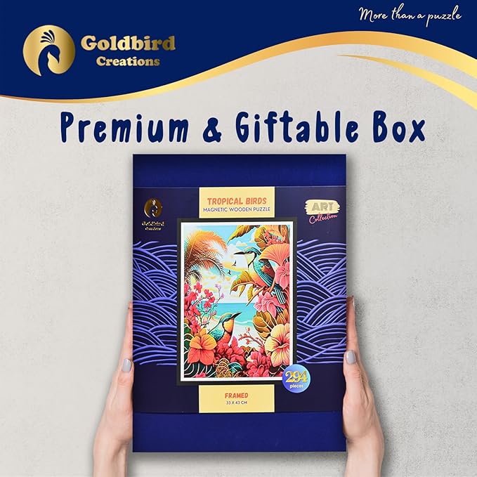 Magnetic Wooden Puzzles with Frame for Adults - Brain Teaser Wooden Jigsaw Puzzles - Lazer Wooden Cut Puzzles - Landscape Wall Art Decor - Christmas & Birthday Gift (Tropical Birds)