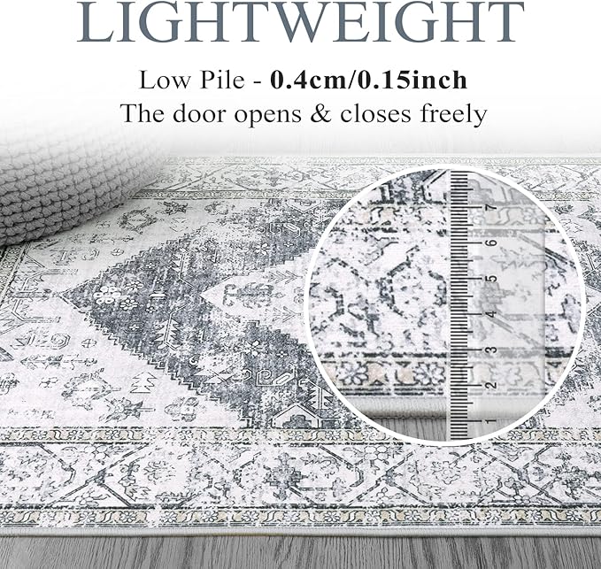 • Functional Lightweight Rug - Lahome ultra-thin rugs are made with everyday use in mind and high-traffic areas. 0.15 inches thickness allows for convenient placement in bedroom, living room and underneath furniture. The door opens and closes freely