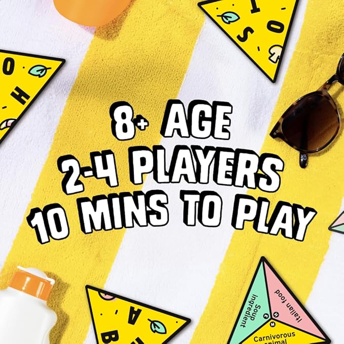 • IT’S TAKEOUT TIME! Tuck into this fast paced word board game where the aim is to shout out a word that links the letter on one card to the category on another. You’ll end up adding this yummy party game into your top 10 family games.