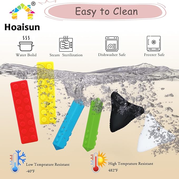 • ★Durable and reusable - Our autism sensory products are durable longlasting. And just keep it clean by hand washing it under the faucet. Of course, this sensory chew toys for autistic children can be sterilized by boiling water, steam sterilizer, dishwasher and sunlight.