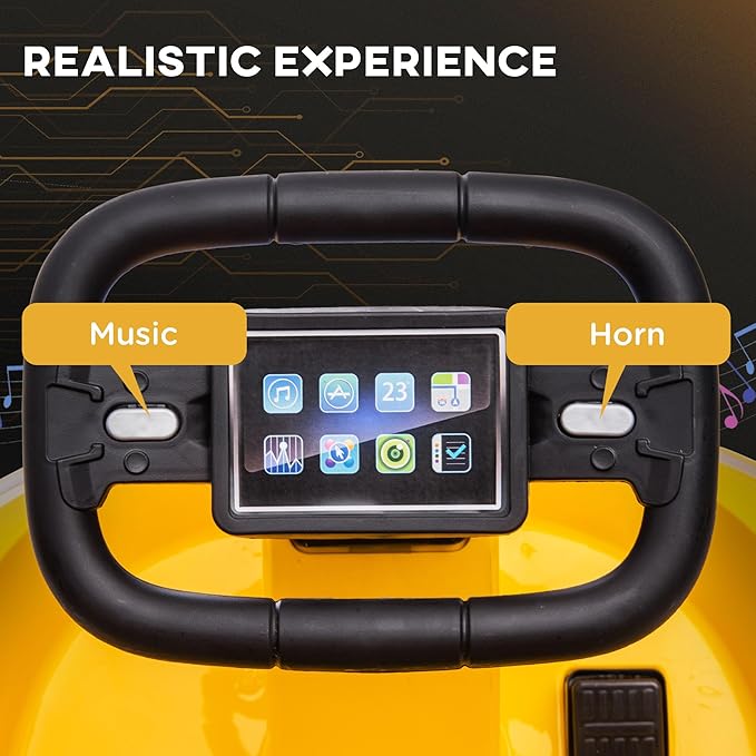 • Exhilarating Spin: This toddler bumper car has the 360° turn that little thrill-seekers don't get tired of. The built-in music, horn, and light-up LED edging make the ride awesome.