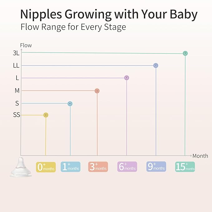 • SOFT AND FLEXIBLE SILICONE NIPPLE: For seamless switch between breast and bottle. It’s super soft and flexible to allow for natural and smooth tongue movement. Latch-on Line: The new design with latching curve of the nipple is guiding for baby’s appropriate latch, so as to achieve effective adsorption.