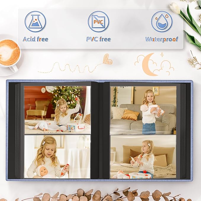 • PERFECT SIZE & CAPACITY: This 4x6 photo album measures 7.1 x 9.6 x 2.1 inches. It can hold 200 4x6 inch photos horizontally, each pages holds 2 photos
