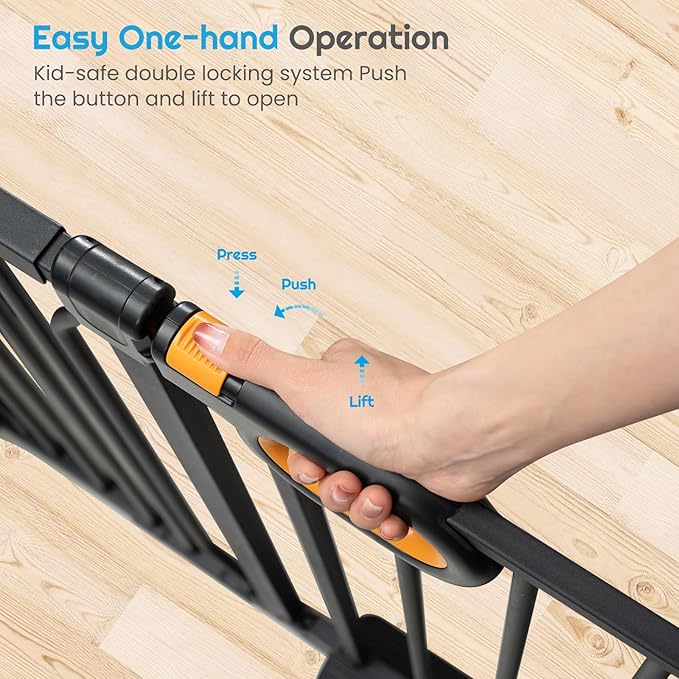 • 【Safe Baby Gate】Our extra wide baby gate can effectively restrict your baby or pets from entering specific areas, ensuring their safety, which provides you and your family with safety and reassurance.