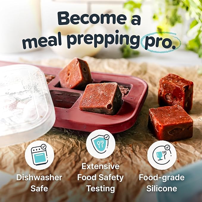 • MEAL PREP: Spend less time thinking about what you're going to eat and more time enjoying it. Our silicone freezer tray with lids is designed to make meal prep a breeze. The tray is made from 100% pure platinum food-grade silicone with a steel-reinforced top and a convenient lid.