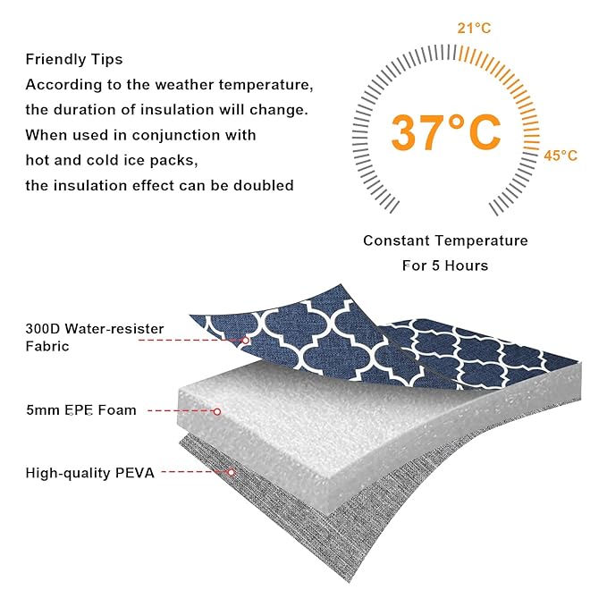 • KEEP COOL OR WARM EFFECTLLY: Insulated lining can keep bottles cool or warm, will help your food or drinks keep the optimal temperature.