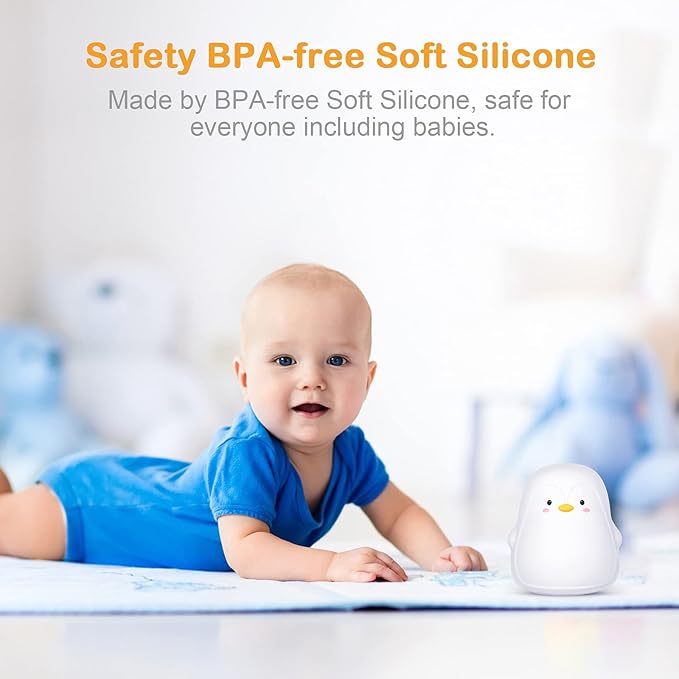 • 3 Lighting Modes: Warm white mode, 7-color breathing mode and single color mode. You can change its mode by patting penguin night light surface. Turn on the button, this lamp enters warm white light mode, pat the night light, it will enter 7-color breathing light mode, pat it again, the light will be fixed in the color you select.