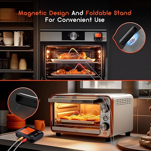 • Upgraded Bluetooth & WiFi Dual Mode Connection: INKBIRD Bluetooth & WiFi Dual Mode Wireless BBQ Thermometer which ensures a more practical remote control range and is more satisfying for barbecuing banquets. The 2.4GHz WiFi module supports an infinite connection distance to let you set, monitor, and optimize your cooking process anytime, anywhere. The Bluetooth 5.3 tech support up to 260ft/80m long-distance a more stable connection and faster data transfer