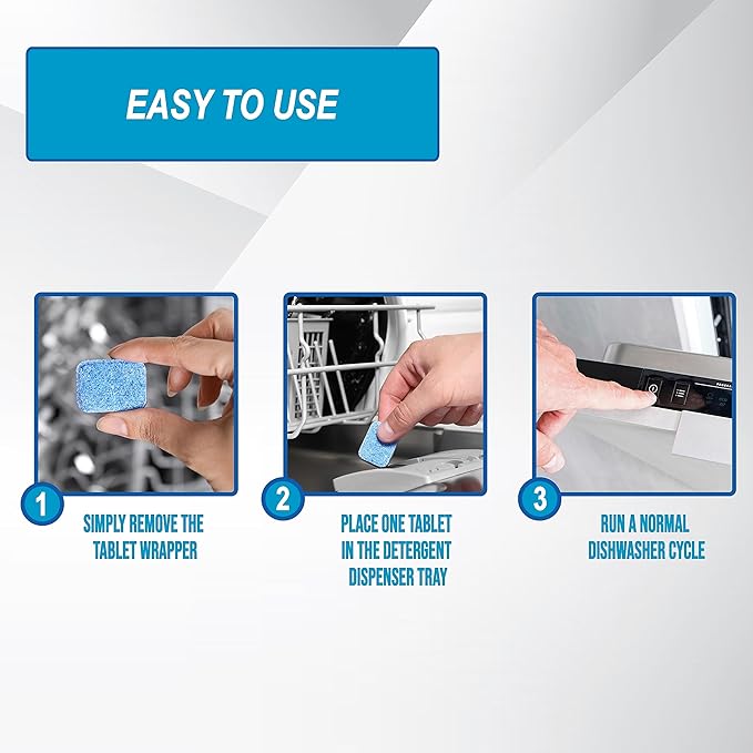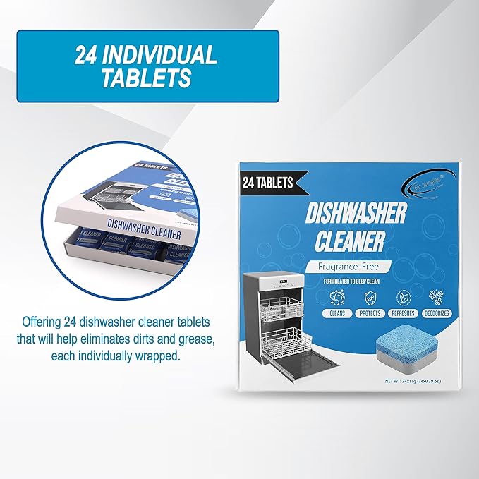 • Easy to Use: Each pack contains 24 individual tablets, making it convenient for use. Simply drop one tablet into your dishwasher for a hassle-free cleaning experience. One pack provides a 12-month supply or more.