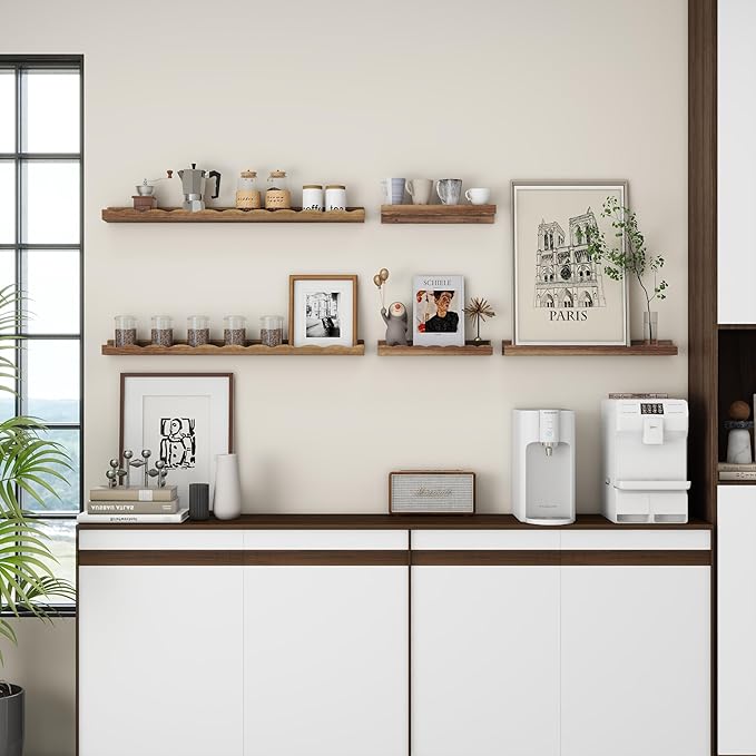 • 【Easy Installation & Breeze Disassembly】These rustic and versatile shelves are conveniently sold in sets of 4, already assembled for your convenience.Installing them is a breeze - simply open the carton box and follow the instruction manual to hang them securely.When it comes time to disassemble, you can easily remove the screws without any hassle.