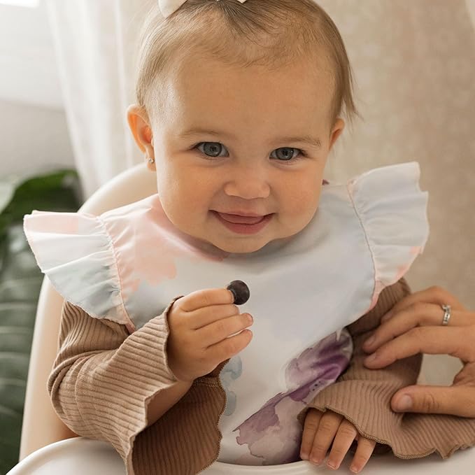 Tiny Twinkle Mess Proof Baby Bib - Waterproof & Lightweight Baby-Led Weaning Apron | 100% Recycled Polyester, Easy Clean & Machine Washable (Cotton Candy, Small 6-24 Months)