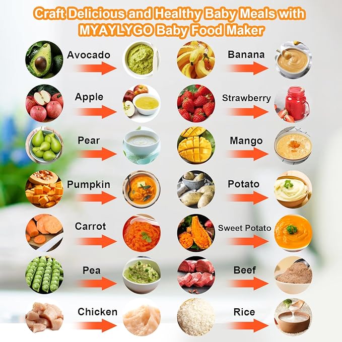• 【Protecting Baby's Safety】Material safety is an important factor when choosing a baby food maker. Our baby food processors passed FDA certification. The baby food maker is made from BPA-free materials, and the baby blender set is made of all baby-grade health certification materials including food-grade silicone, 316 high-quality stainless steel, and food-grade high borosilicate glass, to the baby more assured, baby growth by us guard.