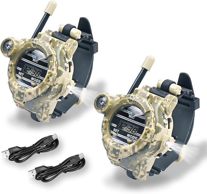 • 【Cool Gadgets Military Toys for Kid】The camo watch walkie talkies make it a favorite and stylish toy for hiking, camping, traveling, and adventure games. It makes a great present for children birthday, Christmas and other special days, especially for who are obsessed with outdoor toys, spy gadgets, army gear, kids tactical gear, kids survival kit.