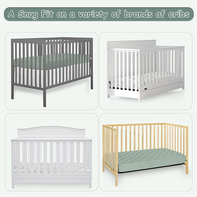 • QUILTED AND SOFT FABRIC - Made of soft and breathable fabric which makes our crib mattress protector comfortable to touch, especially perfect for baby delicate skin. The quilted process increases air flow and helps regulate sleeping temperature.