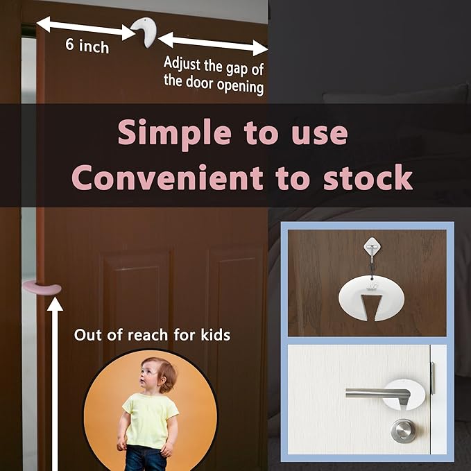 • Intelligent Design Toddler Door Stopper: Flexible C Shape makes it easy to attach and fits around any size door. The door slam stopper Innovative 'teeth' make the pinch guard and door combination more stable, therefore it will not fall off even with a strong slam.