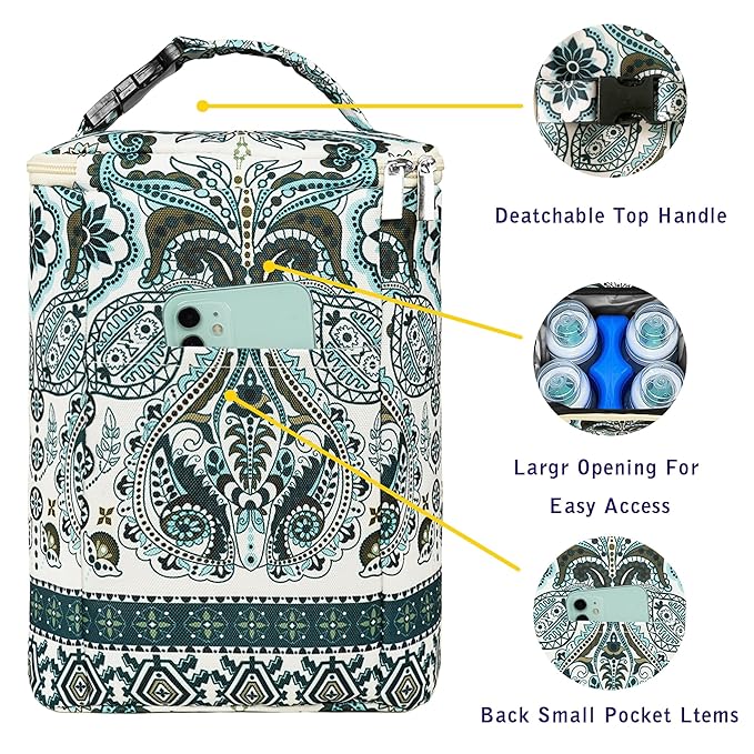 • LARGE CAPACITY: The bottle cooler bag size: 7.8 * 6.2 * 9.8 inches, can hold 4 bottles up to 9 oz. Compatible with most milk bottles and 330ml beverage cans on the market.