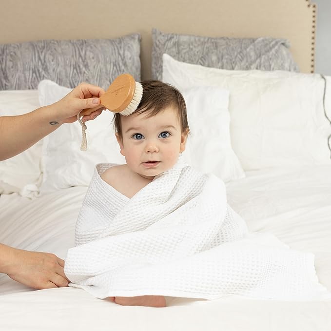 • Healthy Scalp & Cradle Cap Brush – Gently massage your baby's scalp with our naturally soft bristle goat hair brush to stimulate blood flow and evenly distribute natural oils, helping prevent cradle cap while keeping your baby’s scalp healthy and nourished. Every brush stroke creates a calming, luxurious bonding moment that promotes a healthy glow.