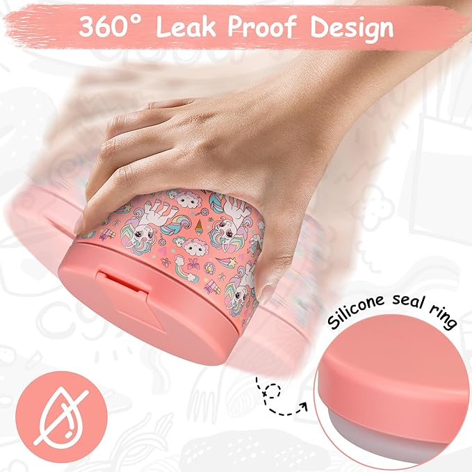 • 100% Leak Proof:Our food thermo comes with a thick silicone gasket. It is full sealed. So you can toss it in your bag or insulation bag without worrying about spills. Wide mouth design are also very easy to clean.