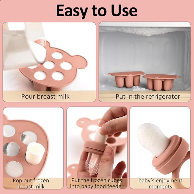 • [More Convenient - Baby Food Feeder + Popsicle Molds!] This Set of Bear baby food freezer tray + baby fruit food feeder is the perfect solution for quick meal prep and feeding. With this baby popsicle molds you can prepare baby food, purees, breastmilk, and more in batch and in advance. Then you just put them into baby feeder, everything is done. Pefect for teething babies with sore gums.