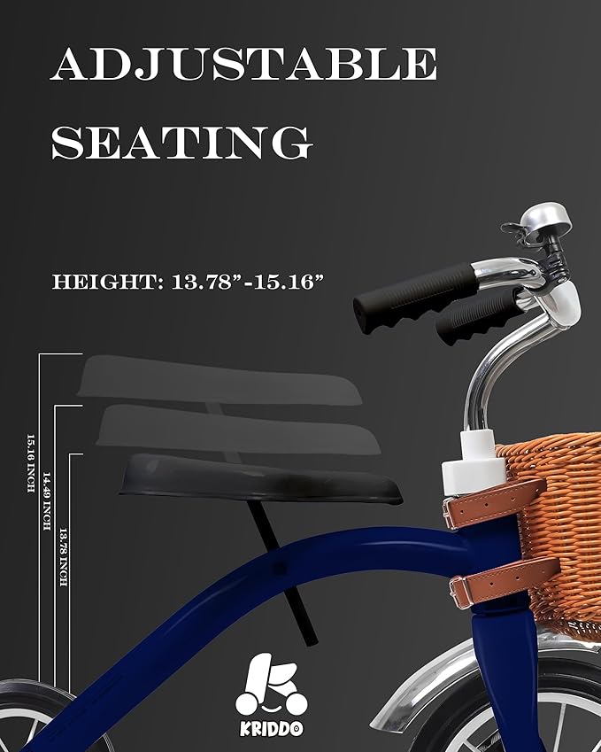 • ADJUSTABLE FOR COMFORT: The adjustable seat ensures your child can easily reach the pedals while seated comfortably, allowing them to take control of their trike with ease.