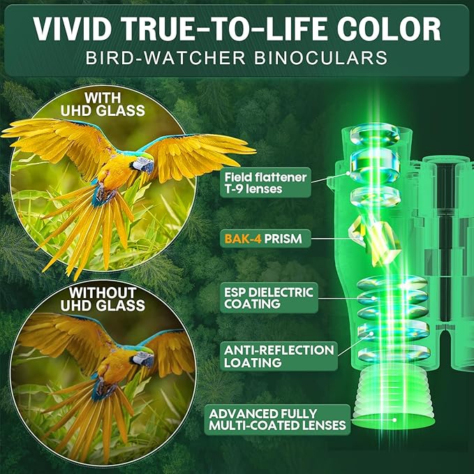 • 【Low Light Night Vision and Lifetime Customer Service】Our small binoculos feature an ergonomic design with a comfortable grip, making extended observation sessions a breeze. Based on this our binoculars also provide low-light night vision. Quality assurance is provided, with 24-hour online customer service available.