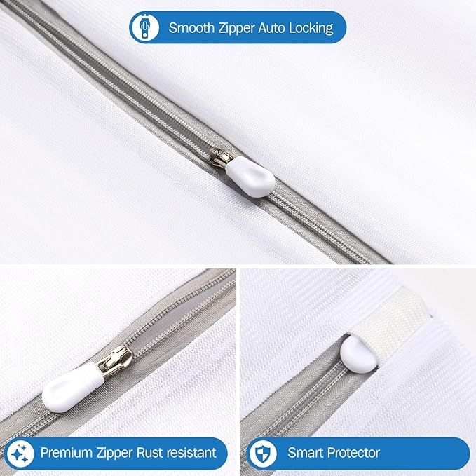 • High Quality Zipper With Protection:Our premium rust-resistant,smooth zipper with auto lock and smart zipper protection will prevent the bag from opening during washing and drying cycle.