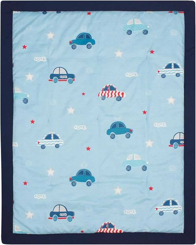 CaSaJa Baby 3-Piece Crib Bedding Set for Boys Girls, Including Soft Quilted Comforter(Blanket), Fitted Crib Sheet and Skirt, Soft Nursery Bedding Set Made of Silky Comfy Materials, Love Cars