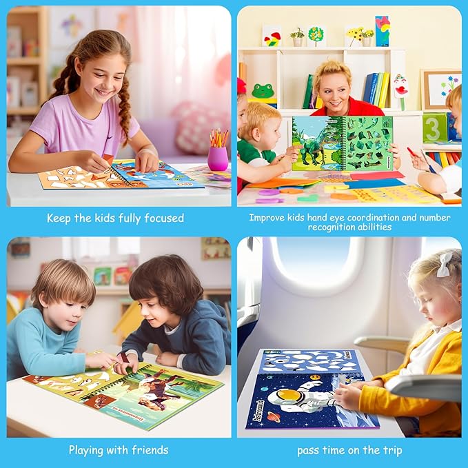 • Enchanting Gifts for Boys:The size of sticker book is compact,at 8.4*9.4 in,each book is travel-friendly, making it an invaluable toys for your kids on car rides,train, or airplane trips. Allows kids to stay away from electronic screens and immerse themselves in the joy of sticker activities. The kids stickers book must be the most exceptional gift for boys aged 4-8, whether you are looking for Birthday gift, Christmas gift or back-to school gifts for boys.