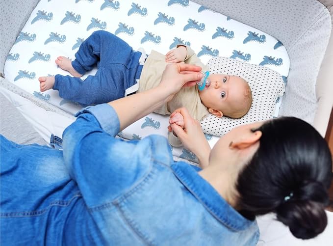 • FITTED SIZE AND HIGH QUALITY: The mini crib sheets perfect for a standard sized crib or infant mattress and tightness to the mattress. Made from soft and high-quality material, the mini crib sheets will not fade with bright color, long-time to use.
