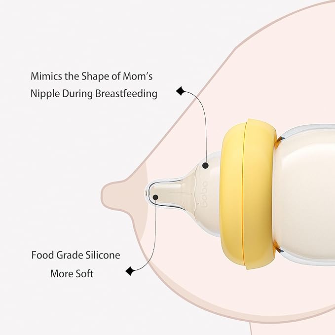 YOHKOH Natural Glass Baby Bottle with Natural Response Nipple, Newborn Anti-Colic Baby Bottles, Wide Neck Mushroom Cap Baby Bottle, Clear (8.8ounce (Pack of 4), Yellow1)