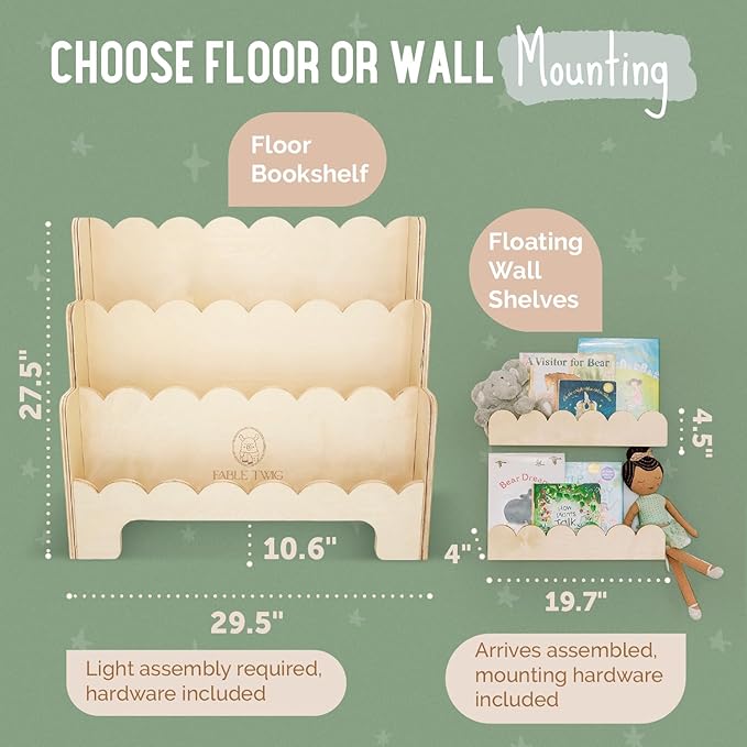 • Made from Smooth, Natural Wood: Each toddler bookcase is made of premium birch plywood with a smooth clear coat that protects the natural wood and your little one's hands; And you can lightly sand our scalloped bookshelf to customize with paint or stain